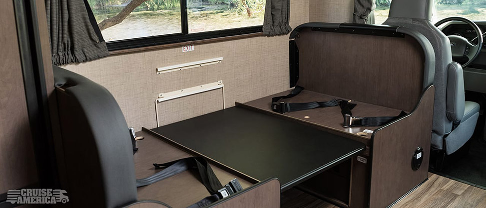 | Baby & Booster Seats | Vehicle has 2 top tethers on the bench seat in the dinette area that is forward facing. The dinette may have to be lowered to fit the seat properly. |