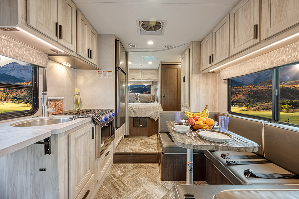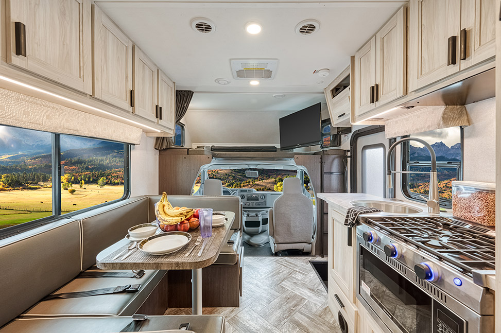 With its large space and flexible layout, the Class C Medium RV has many advantages that make it a great choice for many types of travellers. Although it can be up to 26 feet long, this RV is just the right size for getting around. This RV is great for both new and experienced RV fans because it’s roomy enough to be comfortable and useful while still being easy to get around in. With room for up to five people, you can take a trip with family or friends and make moments on the road that will last a lifetime.