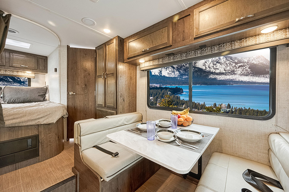 Le type C22-23 est le véhicule récréatif le plus luxueux dans lequel vous pouvez voyager. Il est équipé d’un auvent extérieur pour les journées ensoleillées et est soigneusement nettoyé et inspecté après chaque utilisation.