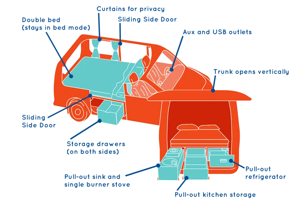 Le Santa Cruz est le modèle le plus économe en carburant et en espace que nous fabriquons. Il est idéal pour les couples et les personnes qui partent seuls en voyage et n’ont pas besoin de l’espace supplémentaire qu’offrent les modèles Big Sur et Mavericks. Vous pourrez vous déplacer en ville, prendre des virages serrés et sortir des sentiers battus sans renoncer au confort ou à des fonctions utiles. C’est vrai, cette voiture ne peut pas aller au festival Burning Man.