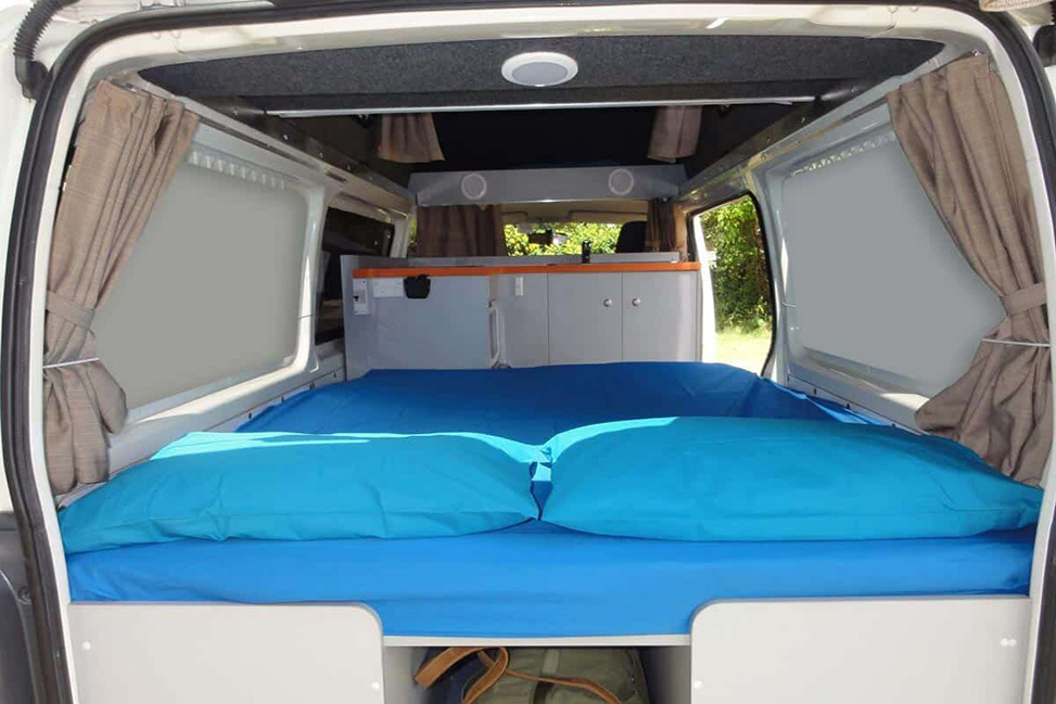 | Slaapplaatsen | 3 volwassenen Tweepersoons – 1,7m x 1,8m ((5′7″) x (5′11″)) Eenpersoons – 1,4m x 2m ((4′7″) x (6′7″)) |