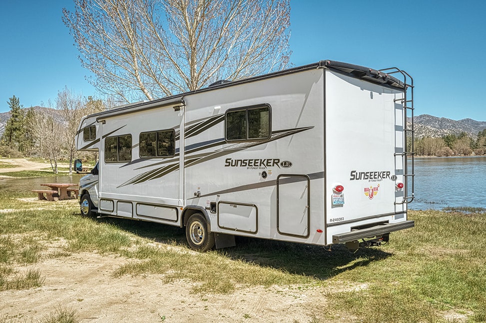 Listen to classic, country, or smooth rock music on the AM/FM radio or a CD while the air conditioning keeps you cool. The car’s strong Ford V8 gasoline engine will get you where you need to go quickly. The slide-out room adds even more space, and if it rains, you can eat inside or outside under the awning and enjoy the fresh air while the steaks are cooking on the grill. Yes, travelling can be fun! Just when you thought things couldn’t get any better, the view of the mountains and lakes at sunset makes you excited for the next day of RV travelling.