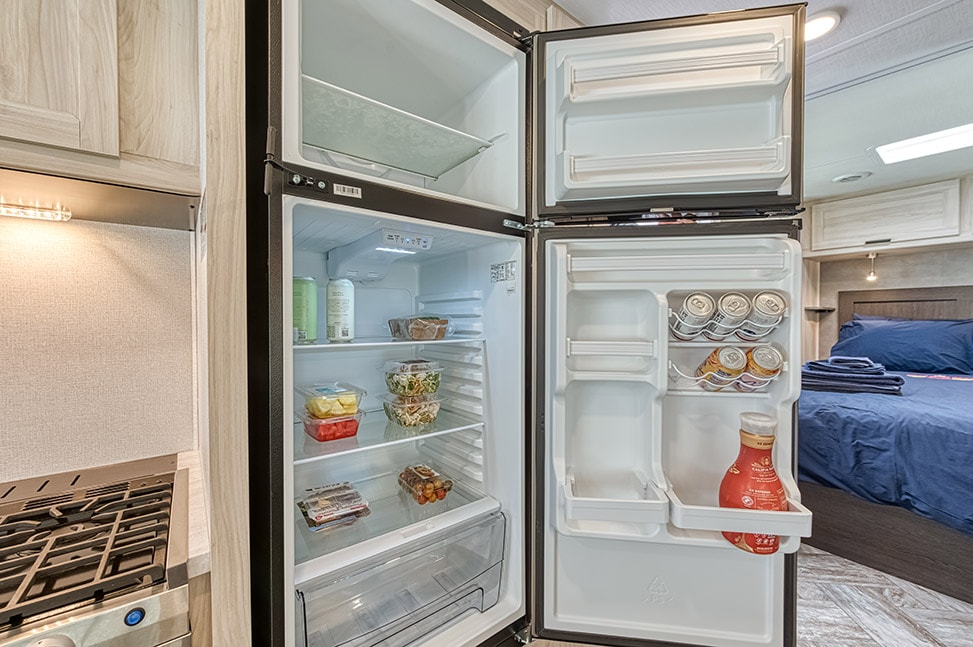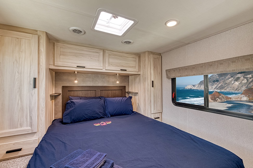 Family-friendly, the Road Bear RV Class C 29-31 foot Motor Home is great. The back bed is a queen, and there is a bed over the cab for kids. There is also a table bed and a sofa bed. This vacation rental is cosy and has everything you need for a great time. There is a toilet, sink, shower, toilet, stove, microwave, fridge, freezer, and hot water heater on board. The only question now is how long are you going to be gone?